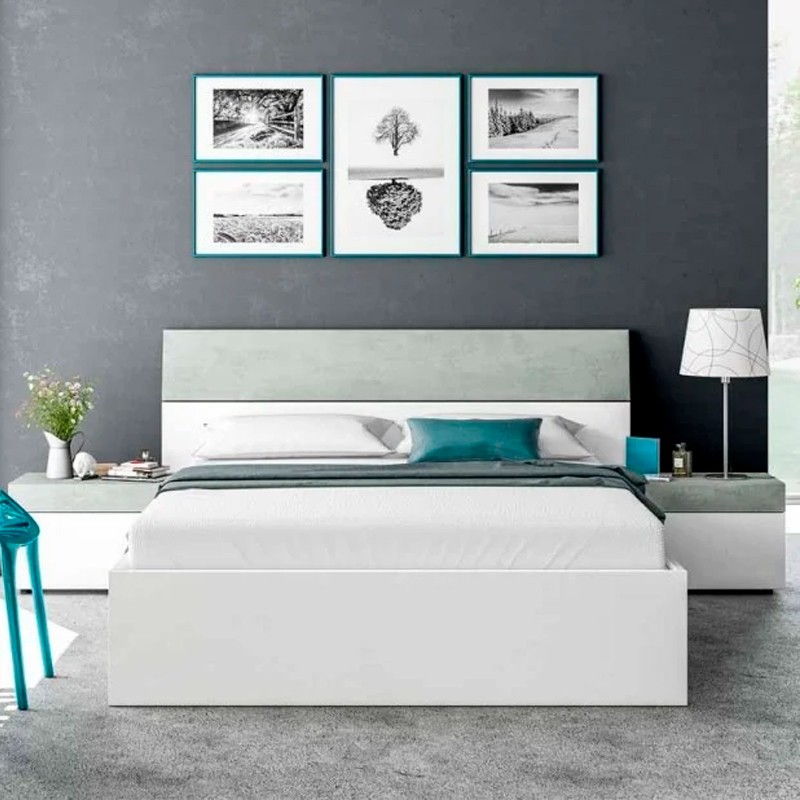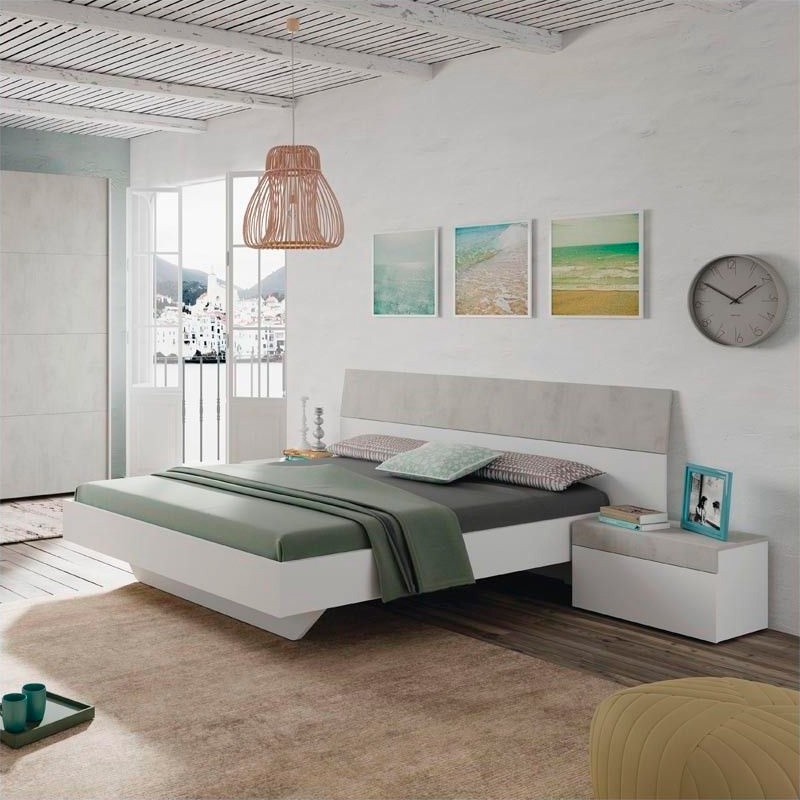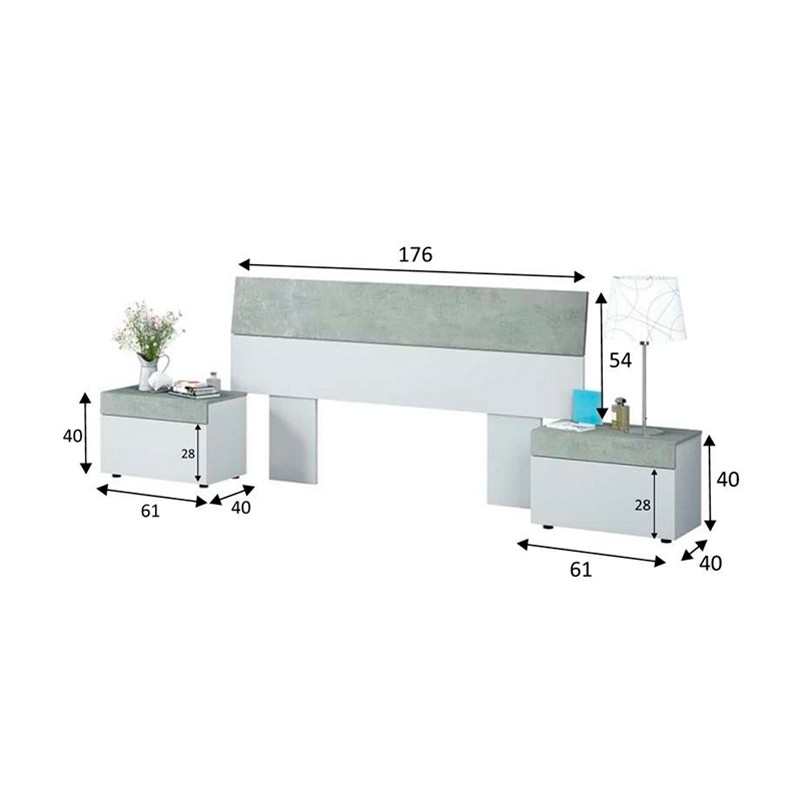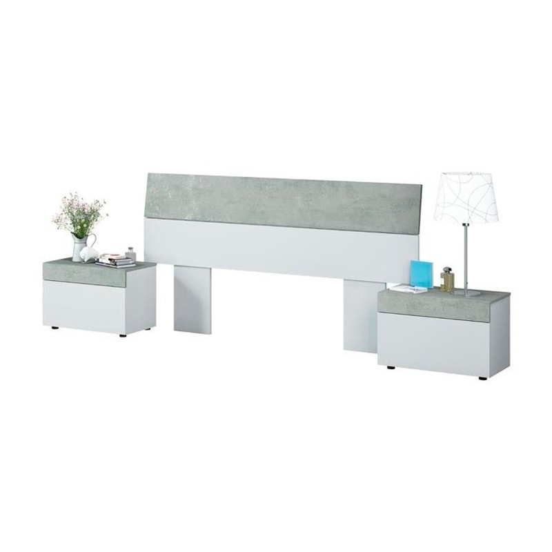 Cabezal con 2 mesitas hechos de melamina en color blanco artik y cemento modelo Tekkan.