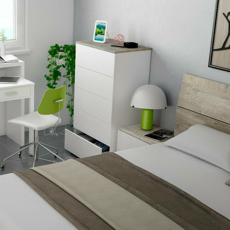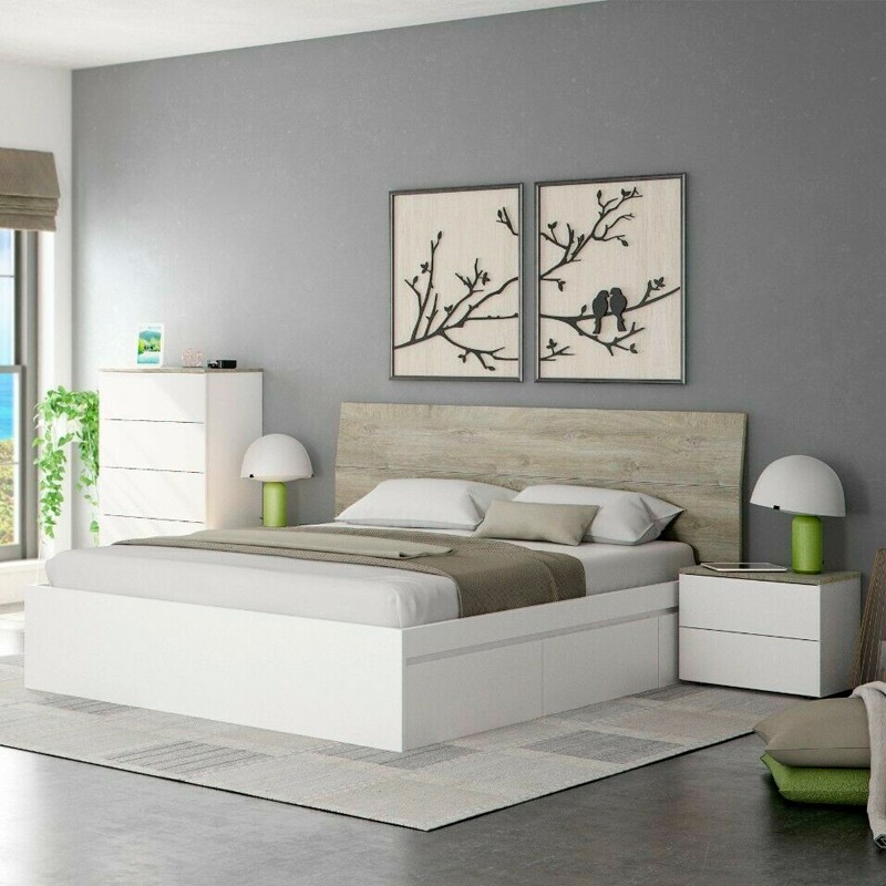 Conjunto compuesto por cabecero y 2 mesitas de noche en color blanco y roble modelo Alaska.