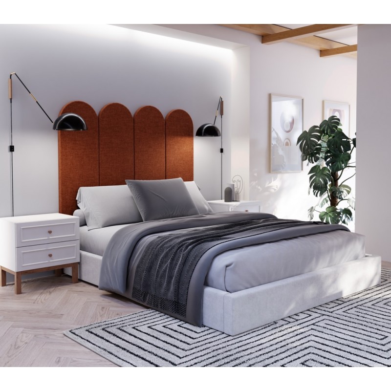 Cabecero adhesivo en set de 4 paneles del mismo color y tamaño. Su acabado en tono beige aporta calidez y elegancia al dormitorio, creando un ambiente acogedor y moderno.